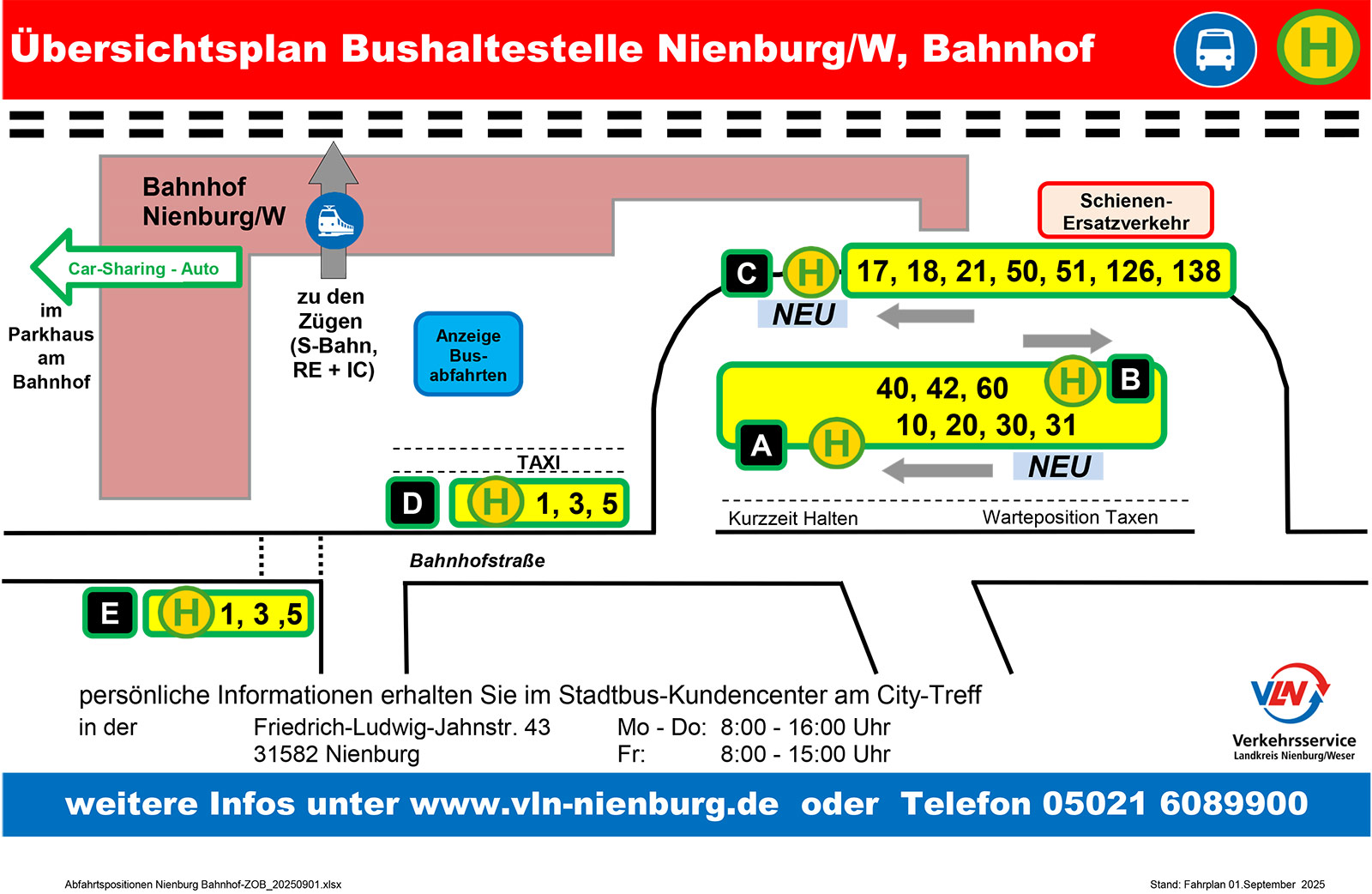 Im Haltestellenverzeichnis finden Sie alle Bushaltestellen des Landkreises Nienburg / Weser.